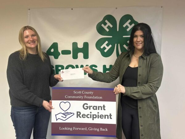 Scott County Community Foundation board member Carmen Boley, right, presents a check for $250 Scott County 4-H Educator Hannah Kerkhof. The grant was awarded from the Agriculture and Education Memorial Fund at the Scott County Community Foundation. Enrollment is currently open for youth in grades K-12 to join 4-H. Visit 4honline.com to enroll or call 812-752-8450 with questions.